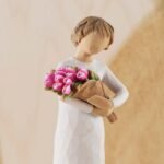 The bright and boldly pink colour of these tulips can represent courage, strength and confidence. One of the earliest blooms in spring, tulips are associated with hope and renewal. The large bouquet can represent one’s community of support and friendship. This figurine comes with the sentiment ‘Bold confidence and bright hopes for you’ Height: 13.5cm